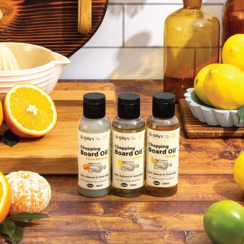 Caring for your chopping boards with Gilly’s food-safe wood oil is simple, safe, and sustainable. Here at Gilly’s, we make purchasing an alternative mineral oil for chopping boards a breeze. Our premium oils will extend the life of your boards, keep your food prep safe, and enjoy the subtle freshness of natural oils.