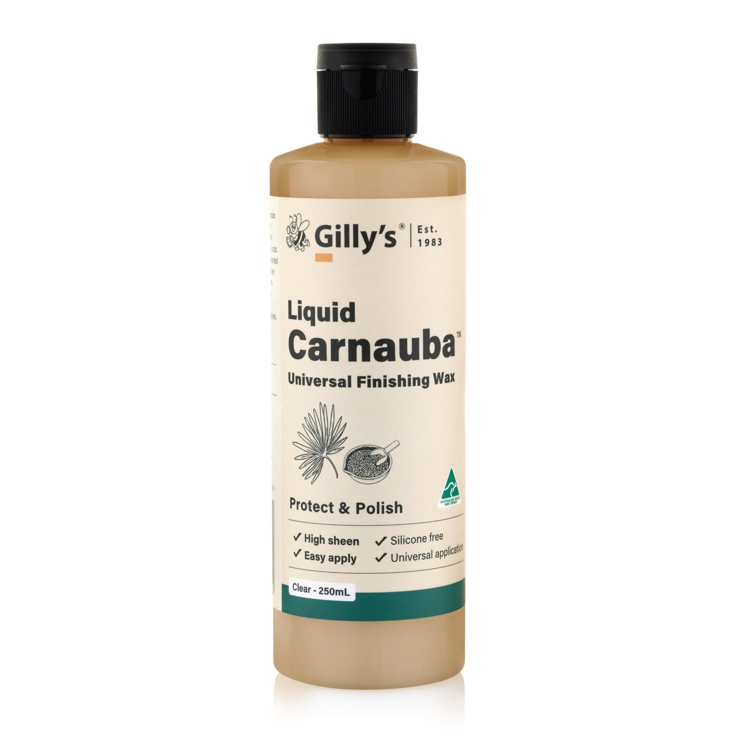 About: Gilly’s Liquid Carnauba is a premium finishing wax, crafted to preserve the natural beauty of timber and many other substrates. Rich with carnauba wax – renowned as the hardest natural wax in the world – it delivers a protective, high-sheen finish whilst maintaining character and elegance. This natural strength not only guard’s timber against general wear but protects other finishes you might have applied initially.
