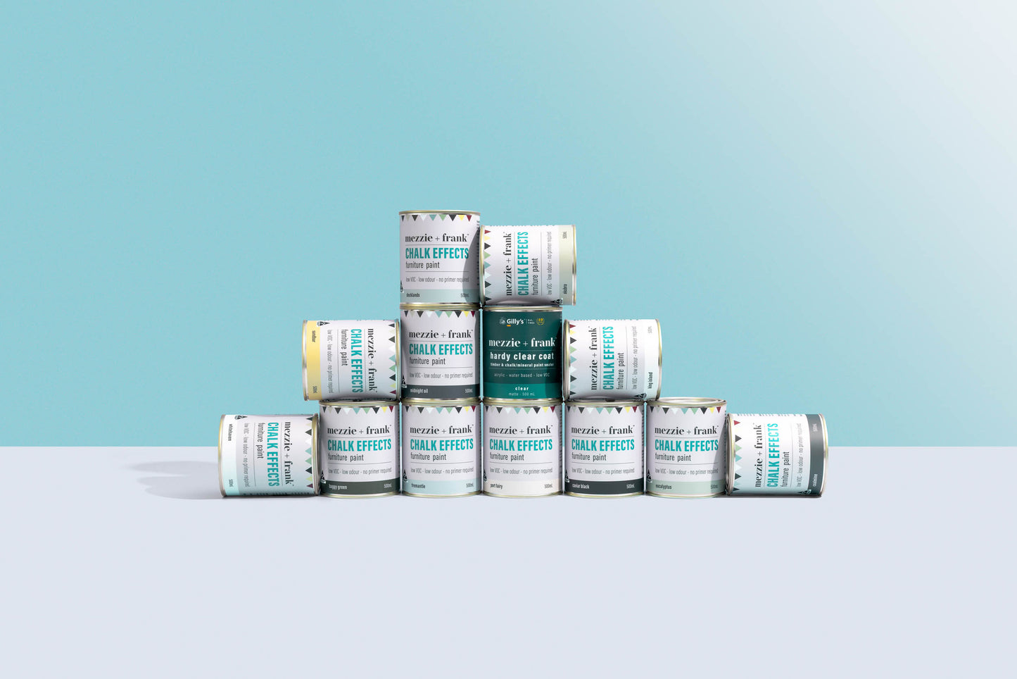 Mix and match multiple colours or stack up on your favourite colour of Mezzie + Frank Chalk Effects Furniture Paint.
